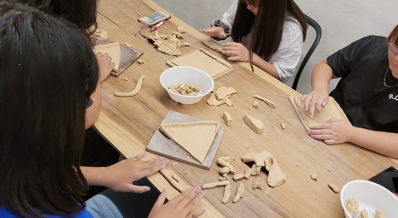 7월 27일(목) 교문초 5·6학년 10명, 토평중 1~3학년 10명의 친구들은 첫 만남을 가진 뒤 직접 체험하게 될 도예가, 아쿠아리스트 등에 대하여 조사하는 등 탐색활동을 거친 뒤 핸드빌딩 기법을 익혀 흙가래를 쌓아 올리고 손끝으로 꼬집어 형태를 만들어가며 도예가 체험을 하였다.