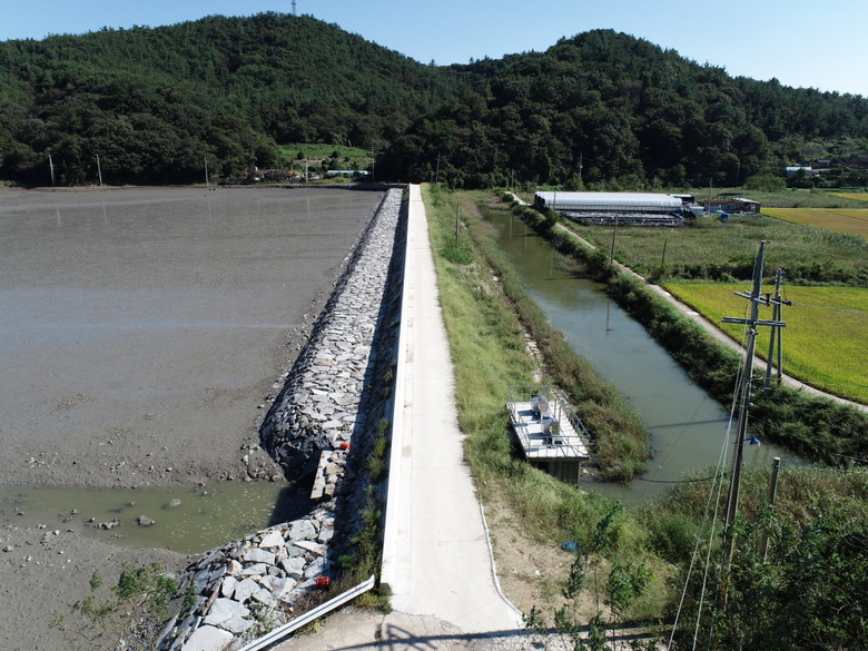 이에 따라 군은 2023년 10월 사업에 착공해 총사업비 19억 3천만 원(국비 50%, 도비 10%, 군비 40%)을 투입해 ▲압사석 및 파라펫 보강 228m ▲제방 포장 228m ▲그라우팅 229공 ▲배수갑문 전동화 1개소 등을 정비 완료했다.