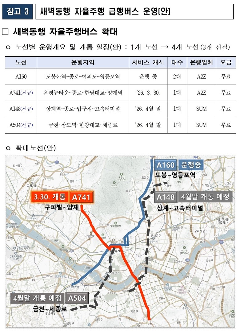 - A160 노선 탑승객 2.7만 돌파, 만족도 73.8%…새벽 교통수단으로 자리 잡아