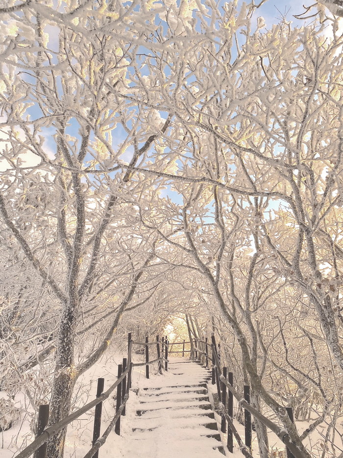 [세계타임즈 이진화 기자]부영그룹 무주덕유산리조트가 있는 무주덕유산 일대는 최근 상고대들이 만들어낸 눈꽃이 절정을 이루고 있다. 설천봉부터 정상 상고대까지 펼쳐진 설경은 이곳을 찾는 방문객들의 감탄을 자아내고 있다.