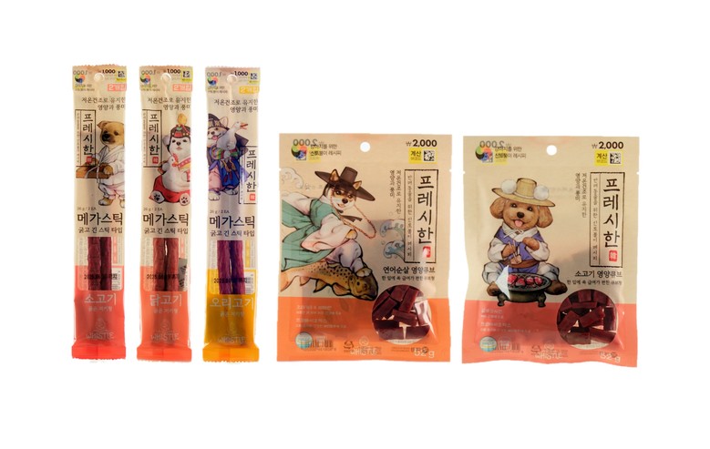 휘슬 프레시한(韓) 저키는 반려견의 선호도에 따라 급여가 가능하도록 긴 스틱 형태의 ‘메가스틱’과 크기가 작은 큐브 형태의 ‘영양큐브’ 2종으로 구성됐다.