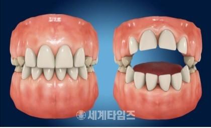 이 습관이 지속되면 앞니가 앞으로 튀어 나오면서 위아래 앞니가 서로 벌어지는 개방교합이 될 수 있다.