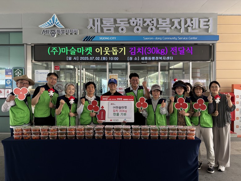 세종시 싱싱장터 소담점, 반곡점, 새롬점 등에 입점한 ㈜마슬마켓은 올 상반기에는 소담동과 금남면 등에 김치를 기부했으며, 하반기에도 새롬동을 시작으로 지속적으로 기부 활동을 이어나갈 계획이다.