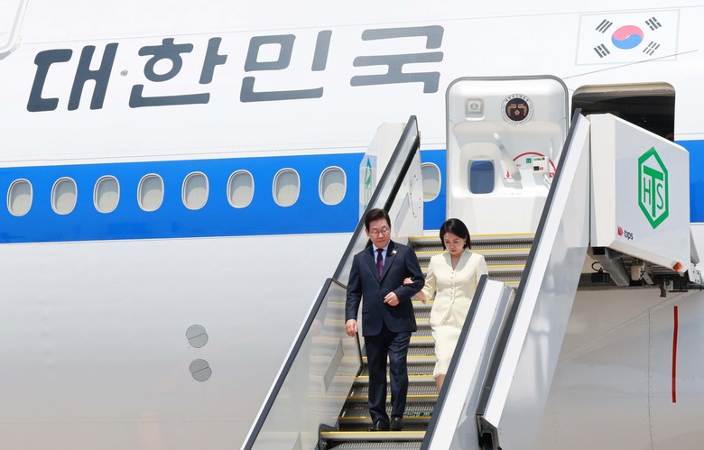 [세계타임즈 = 진정화 기자] 1박2일 일정으로 일본을 방문하는 이재명 대통령과 김혜경 여사가 23일 일본 도쿄 하네다공항에 도착해 공군 1호기에서 내리고 있다. 2025.8.23