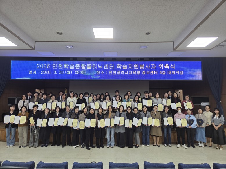 [인천 세계타임즈=심하린 기자] 인천광역시교육청(교육감 도성훈)은 기초학력 보장 현장 지원 체계를 강화하기 위해, 30일 ‘2026년 학습지원봉사자’ 52명을 위촉하고 역량강화 연수를 진행했다.