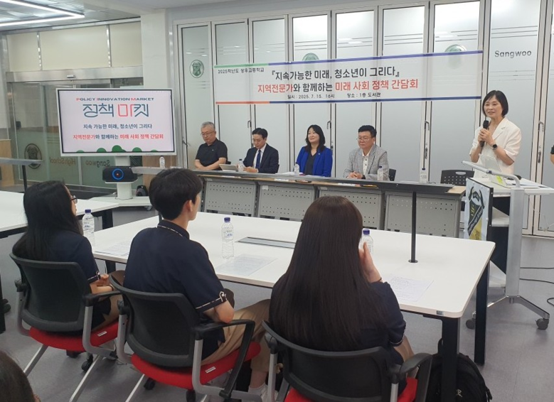 상우고등학교(교장 김영애)는 지난 7월 15일(화), 교내 도서관에서 「지속가능한 미래, 청소년이 그리다 - 지역전문가와 함께하는 미래 사회 정책 간담회」를 개최했다.