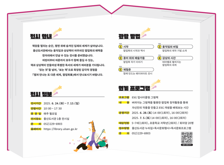이번 전시는 아이부터 어른까지 호기심과 상상력을 자극하는 매개체인 ‘입체책(팝업북)’을 주제(테마)로 기획됐으며, 관람객이 직접 책을 펼쳐보고 넘기며 체험할 수 있는 참여형 전시로 진행된다.
