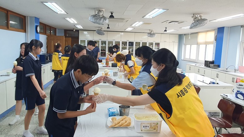◦ 겨울방학 석면공사로 인해 짧은 여름 방학을 마치고 2학기 열공중인 학생들을 위해 시흥중학교 학부모회에서 ‘아이스크림 나눔’ 행사 실시