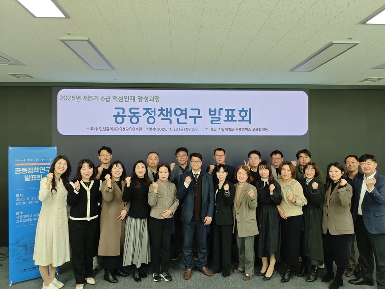 [인천 세계타임즈=심하린 기자] 인천광역시교육청교육연수원(원장 최철호)은 11월 28일 서울대학교 시흥캠퍼스에서 ‘제5기 6급 핵심인재 양성과정’ 공동정책연구 발표회를 개최했다.