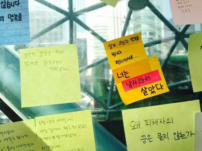 (사진=2016년 강남역 살인사건 당시 강남역 일대에 붙은 포스트잇. 인터넷 커뮤니티 출처