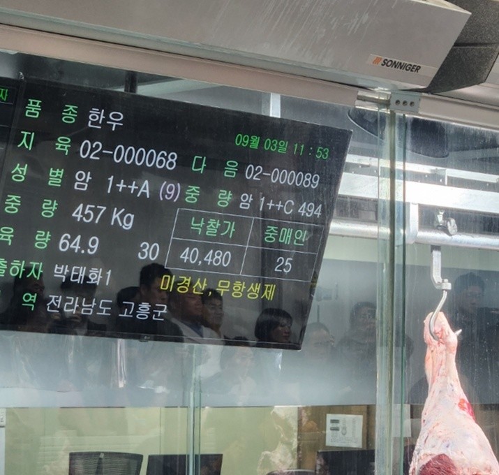 특히, 이 출품우는 경매에서 kg당 40,480원, 총 1,850만 원에 낙찰돼 고급육으로서의 가치를 인정받았다.
