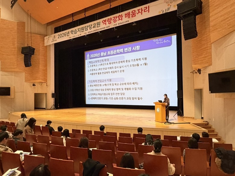 [충남 세계타임즈=이현진 기자] 충남교육청(교육감 김지철)은 26일(목) 충남교육청학생교육문화원(천안)에서 2026년 학습 지원 담당 교원 410명과 14개 시군 교육지원청 기초학력 담당 장학사를 대상으로 배움자리를 개최했다.