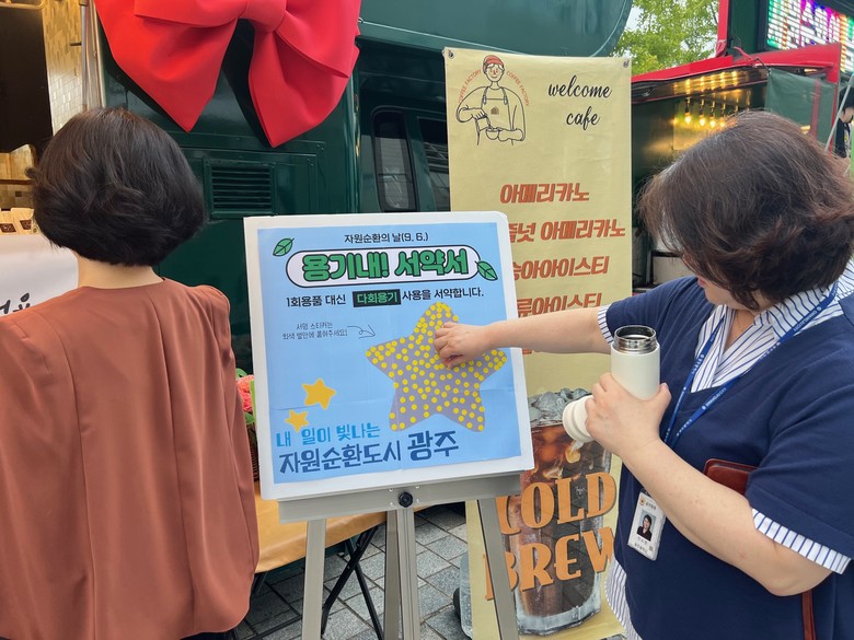 광주시는 공공기관 일회용품 줄이기를 위해 ‘일회용 컵 없는 커피차 행사’를 열고 개인컵을 가져온 참여자에게 커피를 제공, 일상 속에서 일회용품 줄이기 실천을 다짐했다.