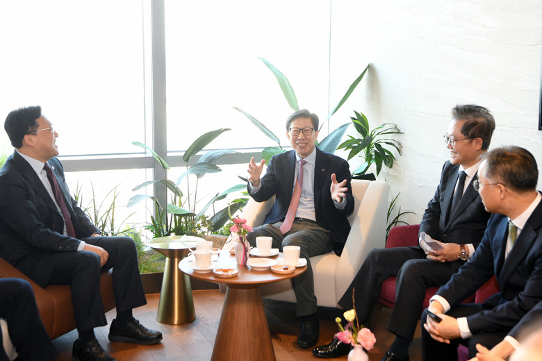 박형준 시장 주재로 김병환 금융위원장, 조용병 전국은행연합회장, 강석훈 한국산업은행 회장, 양재생 부산상공회의소 회장, 허성무 한국성장금융투자운용대표 외 지역기업 대표들이 참석했다.