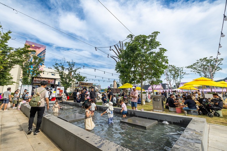 | ▲ 남문터광장 일대 녹색카페와 물놀이장에서 관람객들이 축제를 즐기고 있다 |