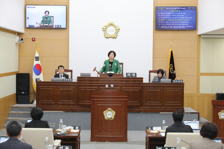 한편 이날 본회의에서는 송재기 의원이 「군민과 함께하는 고향사랑기부금 활성화 방안」을 주제로 5분 발언 하였고, 문은영의원은 「구천동 관광특구 미래를 위한 변화와 혁신 방안」에 대해 5분 발언 하였다.
