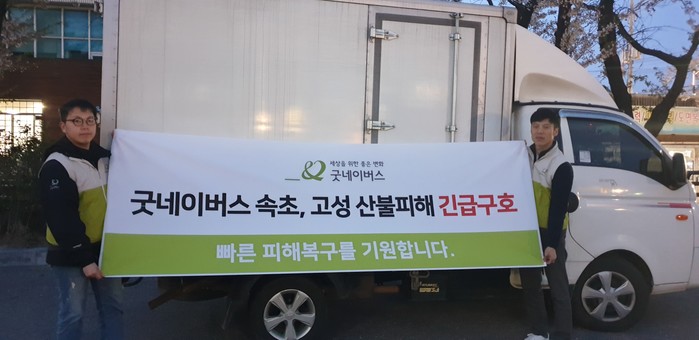 한편, 굿네이버스는 지난 5일(금), 강원도 산불 피해 지역 주민을 위해 긴급하게 필요한 겨울용 담요 등의 물품을 지원했으며, 현장에 조사단을 파견해 효과적인 긴급구호를 위한 지원계획을 수립하고 있다. 굿네이버스를 통해 산불 피해로 고통 받는 강원도 주민들을 도우려면 전화와 굿네이버스 홈페이지를 통해 후원할 수 있다.