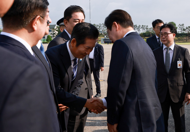 [세계타임즈 = 이채봉 기자] 이재명 대통령은 23일 오전 이시바 시게루 일본 총리, 도널드 트럼프 미국 대통령과의 연이은 정상회담을 위해 서울공항을 통해 출국했다. 이번 순방에는 부인 김혜경 여사도 동행했다.이 대통령은 검은색 정장에 짙은 붉은색의 넥타이 차림으로, 김 여사는 옅은 노란색 정장을 입고 대통령 전용기인 공군 1호기에 탑승했다.