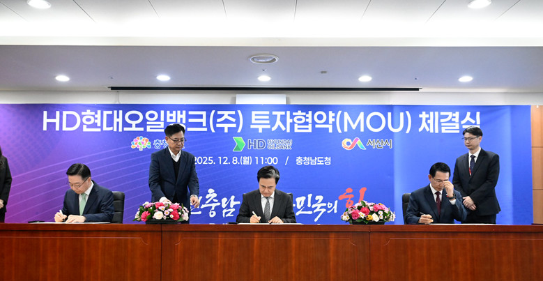 협약식에서 김태흠 지사는 “충남은 HD현대오일뱅크를 비롯한 석화업계의 재도약을 위해 전력을 다할 것”이라며 “지난 8월 서산시가 산업 위기 선제 대응 지역에, 11월에는 고용 위기 선제 대응 지역으로 지정되고, HD현대오일뱅크가 첫 사업 재편안을 제출한 만큼, 도 차원에서 신속하고 전방위적인 지원을 아끼지 않겠다”고 말했다.
