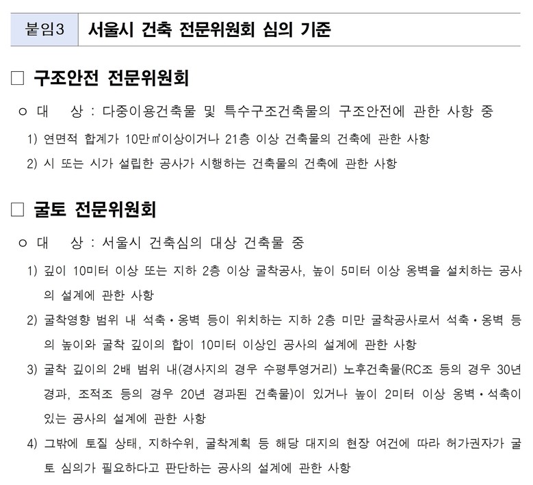 - 구조안전‧굴토 전문위원회, 모아주택 통합위원회 결과 누리집 ‘상시 게시’(규제철폐154호)