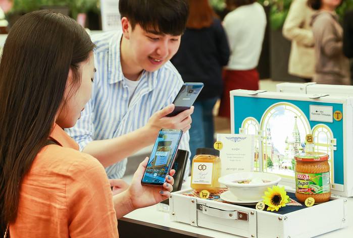 서울 강남 파미에스테이션에 마련된 ‘갤럭시 스튜디오’에서 카메라만 대면 각국의 요리, 메뉴판, 와인, 관광명소, 식재료 등의 정보 확인이 바로 가능한‘빅스비 비전’을 체험하고 있는 모습