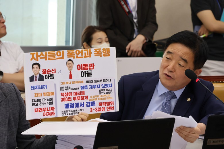 그러나 더불어민주당 강득구 의원은 정순신 전 검사의 아들과 이동관 후보자 아들의 학교폭력을 비교하며 이동관 아들의 학교폭력이 심각함을 주장했다 . 정순신 아들과 이동관 아들의 학교폭력 공통점으로 ▲ 학폭이 1 년 이상 지속적으로 이루어진 점 ▲ 기숙사가 있는 자사고에서 발생한 점 ▲ 피해사실을 증명하는 과정에서 , 피해자들은 학교폭력 사실이 알려져도 달라질 것이 없다고 권력에 억눌린 자포자기 상태였다는 점 등을 들었다 .
