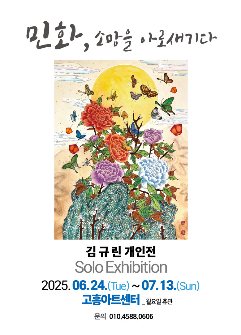 이번 전시는 고흥아트센터의 2025년 제2차 전시 대관 공모를 통해 선정된 두 팀 중 하나인 김규린 작가의 개인전으로, 총 40여 점의 민화 작품이 전시된다. 작가는 전통 민화에 현대적 감각을 더해 일상의 행복과 안녕을 기원하는 다양한 작품을 선보일 예정이다.