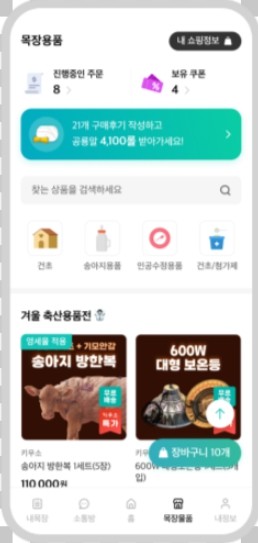 | ▲ 키우소 '목장용품' 화면 |