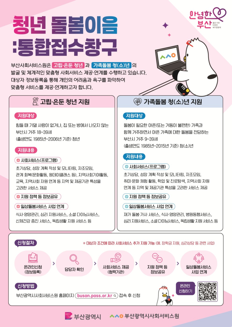 이를 통해, 부산만의 청년 돌봄이음 사업을 고도화하고 체계적인 사회서비스를 제공하며 지역 주민과 사회복지관의 연계를 강화할 방침이다.
