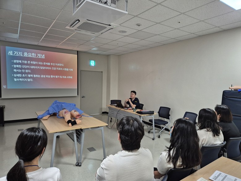 교육과정은 심근경색, 대동맥박리, 뇌출혈·뇌경색 등 심뇌혈관 응급질환부터 다발성 골절, 긴장성 기흉 등 중증외상까지 실제 응급현장에서 가장 빈번히 발생하는 환자 상황을 중심으로 구성됐다. 이송 단계부터 응급실 도착, 진단, 치료에 이르는 실제 진료 흐름을 시뮬레이션 기반으로 재현해 의료진이 골든타임 내 대응능력을 체계적으로 갖출 수 있도록 설계됐다. 교육과 함께 진행된 협진 워크숍에서는 병원–119–지자체가 함께 중증 환자 전원체계와 협력 프로토콜을 논의하며 지역 응급의료 협력체계를 더욱 촘촘하게 다졌다.