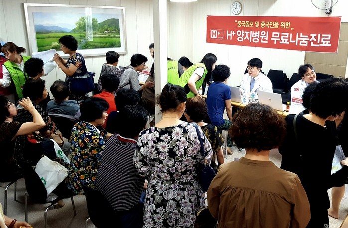 에이치플러스(H+) 양지병원(병원장 김상일)은 24일(일) 서울 구로구 가리봉동에 위치한 ‘한중사랑교회(담임목사 서영희)’ 에서 중국 동포 및 중국인을 위한 무료 나눔 진료를 전개했다.