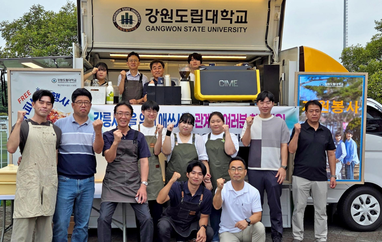 [강원도 세계타임즈=김민석 기자] 강원도립대학교(총장 최종균)는 9월 9일 아침 강북공설운동장 비상급수 운반차량 차고지에서 강릉시 장기 가뭄 극복을 위해 현장에서 헌신하고 있는 급수지원 소방대원들에게 커피와 음료, 빵을 무료로 제공하였다.