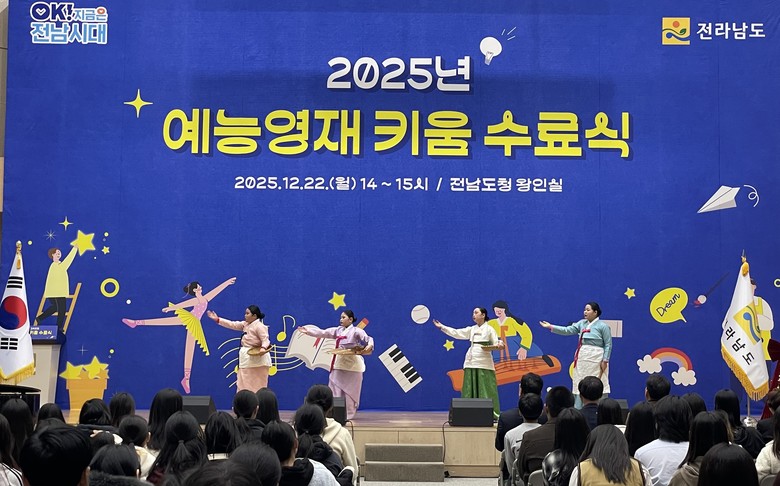 [전남 세계타임즈=우덕현 기자] 전라남도는 도청 왕인실에서 2025년 예능영재 키움 수료식을 지난 22일 열어 1년간의 교육과정을 성실히 이수한 예능영재 학생들을 격려했다.
