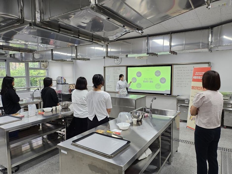 | ▲ 6.1.(토), 세종미래고등학교에서 학교 방문의 날 행사가 열리고 있다. {4개 학과(바이오화학과 체험, 베이커리카페과 체험, 로보트로닉스과 체험, 스마트기계과 체험) 에 참여한 학생, 학부모의 모습} |