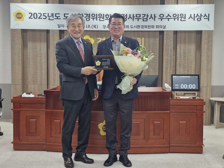 [경기도 세계타임즈=송민수 기자] 경기도의회 도시환경위원회 유종상 의원(더불어민주당, 광명3)이 18일, ‘2025년 경기도의회 도시환경위원회 행정사무감사 우수위원’으로 선정되는 영예를 안았다.