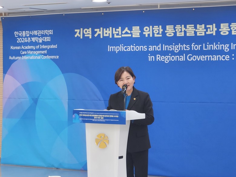 광주시의회 박미정(더불어민주당,동구2) 의원은 29일 광주시청 중회의실에서 열린 ‘한국통합사례관리리학회 2024추계국제학술대회’ 종합토론자로 참석해 ‘광주다움 통합돌봄’ 을 소개하며 지방의회 역할의 중요성 및 통합돌봄과 통합사례관리 연계에 대해 설명했다.