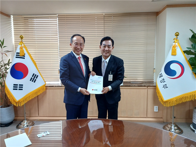 25일 국민의힘 전남도당에 따르면 김화진 전남도당 위원장(사진 오른쪽, 국민의힘 제공)이 지난 23일 정부 서울청사를 방문, 추경호 기획재정부장관과 면담을 가졌다.
