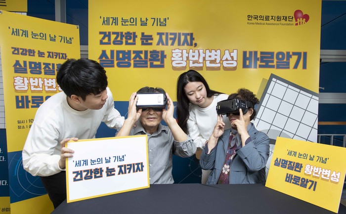한국의료지원재단(이사장 유승흠)은 오는 10월 10일 ‘세계 눈의 날’을 맞아 대표적인 실명 유발 질환 중 하나인 황반변성에 대한 질환 인지도를 높이기 위한 캠페인을 8일 종로노인종합복지관에서 어르신들을 대상으로 진행했다고 밝혔다.