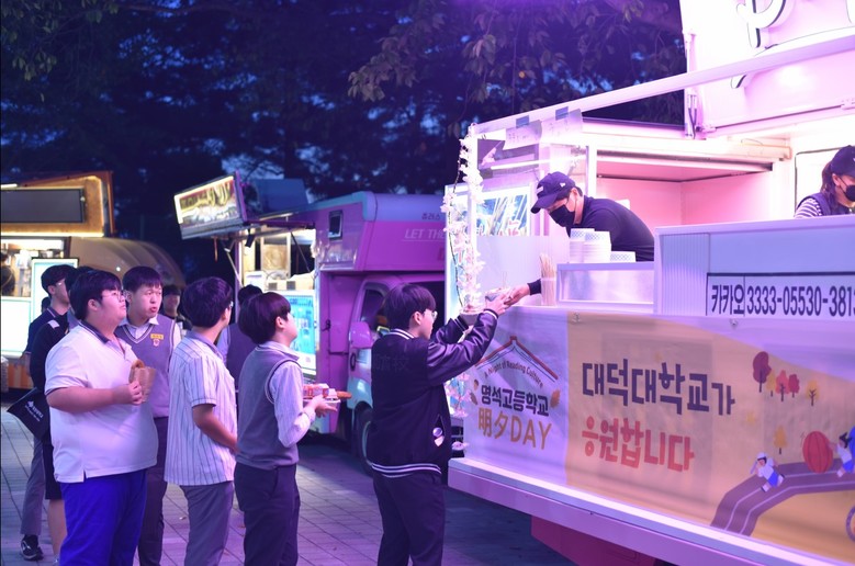 이번 ‘明夕Day 인문학의 밤’은 기존에는 없던 새로운 교육활동으로 학생들의 자율적인 참여를 바탕으로 오후 4시부터 9시까지 학생과 교사, 지역대학과 주민의 참여로 이루어졌다. 특히 대학에서는 학생들을 위해 샌드위치, 음료수, 츄러스, 떡볶이, 타코야끼 등 다양한 간식을 제공하여 학생들의 뜨거운 반응을 이끌어냈다.