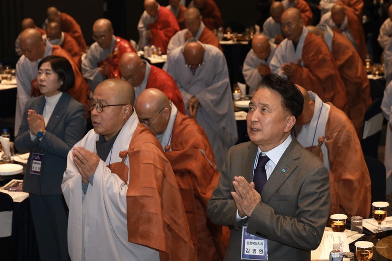 - 도민 안녕·도정 발전 위한 기원법회 열어 - [충북 세계타임즈=이현진 기자] 충청북도와 충북불교총연합회는 11월 21일 김영환 도지사를 비롯한 시·군 부단체장과 충북불교총연합회(회장 정덕 스님), 불교계 인사 등 160여 명이 참석한 가운데 도민의 안녕과 도정 발전을 기원하는‘2025년 민선8기 도정발전 기원법회’를 성대히 개최했다.