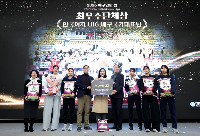 여주시는 지난 1월 28일 올림픽 파크텔에서 개최된 ‘2026 배구인의 밤’ 행사에 참석해 대한배구협회, 여주시농협RPC와 함께 행사 참석자들 전원과 최우수 단체상을 수상한 한국여자 U16 국가대표팀에게 대왕님표 여주쌀을 부상으로 전달했다.