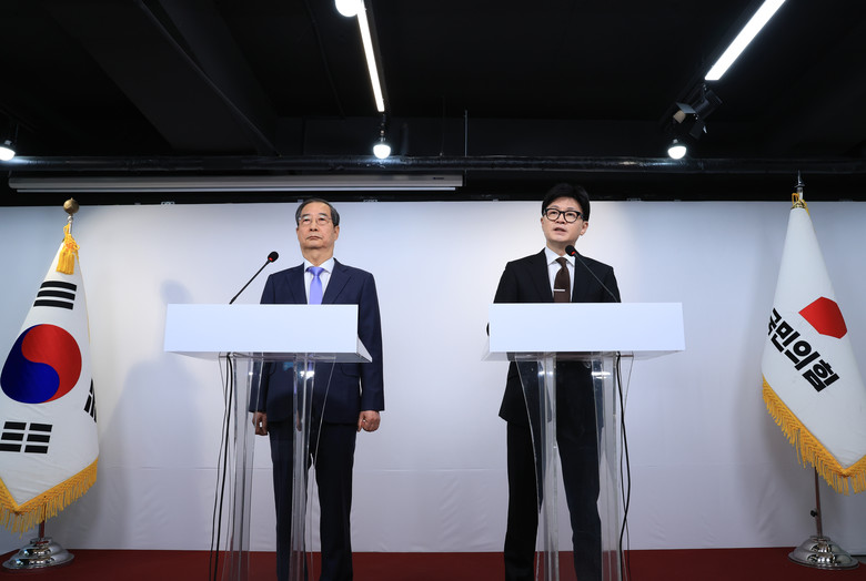 내란의힘 한동훈 대표 "질서있는 조기 퇴진" 내란 공조범 한덕수 국무총리 "국회에 협조 구할 것"