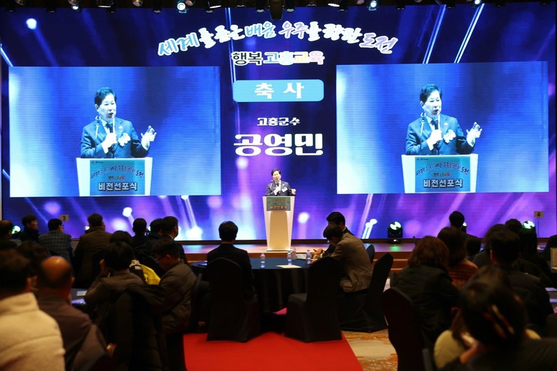 이날 비전 선포식에는 공영민 군수와 김대중 전라남도 교육감을 비롯해 도·군의원, 교육·공공기관장, 학부모, 학생, 지역 기관·단체장 등 지역 교육공동체 전반이 참석해 고흥교육의 비전과 방향을 함께 확인했다.