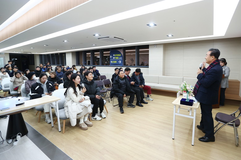 행사는 주민 60여 명이 참석한 가운데 진행됐으며, 김성제 시장이 직접 2025년 시정 현안을 설명하고 주민들의 생활 불편 및 건의 사항을 청취하고 답변하는 방식으로 진행됐다.
