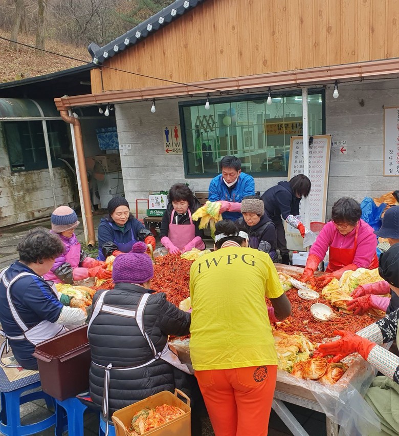 | ▲ IWPG 글로벌 11국 경기동부지부 회원들이 모여 '평화사랑 김장 나눔' 행사를 통해 김장을 하고 있다. |