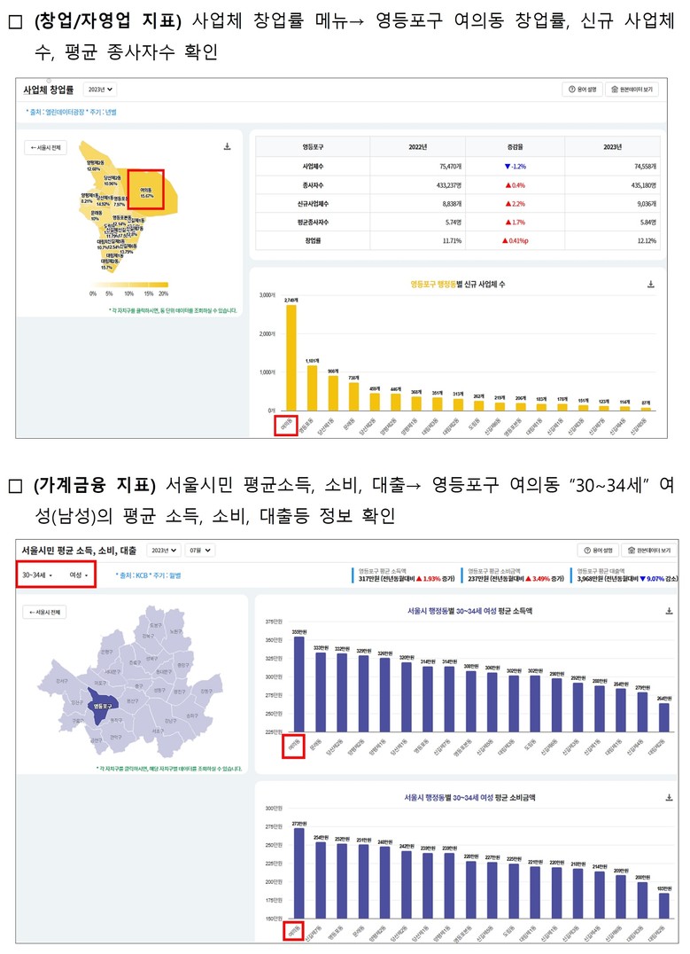 특히 426개 행정동 단위로 세분화된 데이터를 제공, 자치구 평균이 아닌 실제 생활권 수준 경제 여건도 살펴볼 수 있도록 설계됐다.