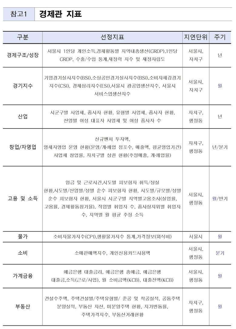 아울러 서울시 정책 기획과 지역 경제 진단.정책 성과 점검에 활용, 정책 판단의 근거를 보다 명확하게 제시하고 수립해 나갈 수 있는 기반이 될 것으로 보고 있다.