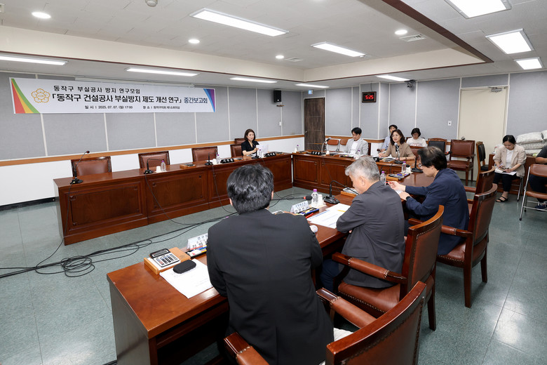 [동작구 세계타임즈=이장성 기자] 동작구의회(의장 정재천)는 지난 7일 구의회 제1소회의실에서 ‘동작구 부실공사 방지 연구모임’ 중간보고회를 개최했다.