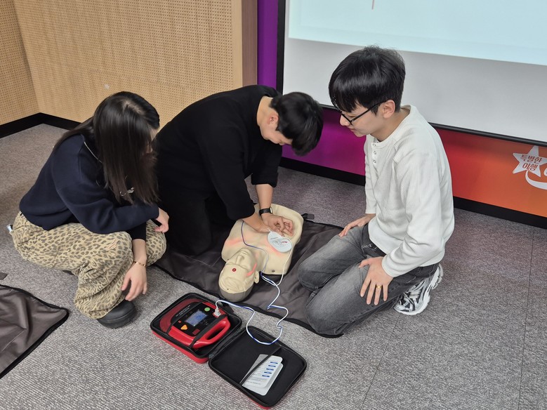 교육은 재단 대회의실에서 진행되었으며, 직원들은 다양한 사례를 바탕으로 △올바른 소화기 사용법 △상황별 응급처치 방안 △심폐소생술(CPR)방법 △자동제세동기(AED) 사용법 등을 이론으로 학습한 뒤, 마네킹과 자동제세동기(AED) 장비를 이용해 실습을 진행했다.