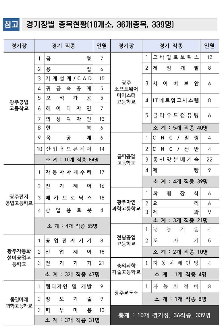 [광주 세계타임즈=손권일 기자] 광주광역시(시장 강기정)는 지역 숙련기술 수준 향상과 기능 개발을 촉진하기 위해 4월 1일부터 5일까지 광주공업고등학교 등 10개 학교에서 ‘2024년 광주 기능경기대회’를 개최한다.